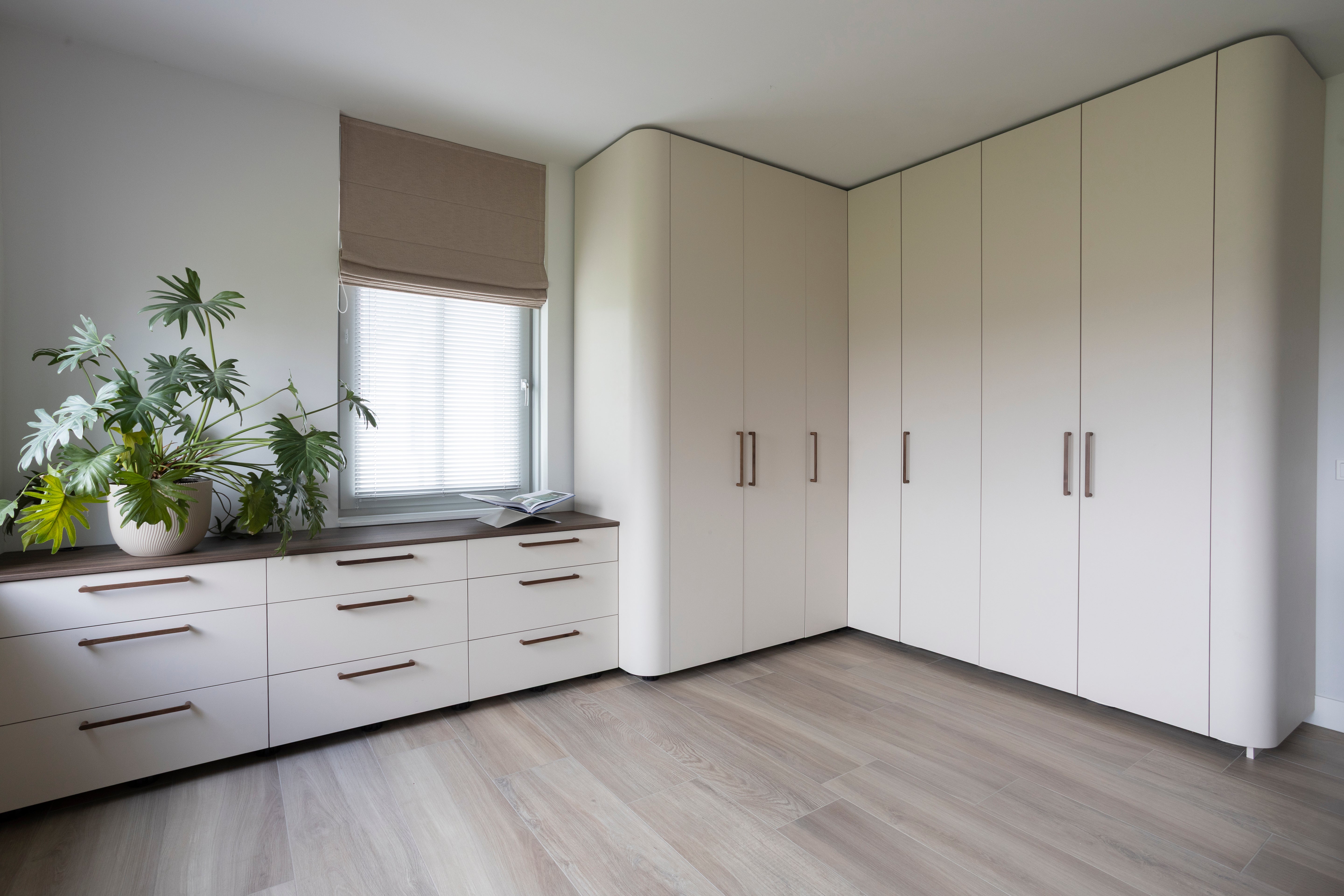 Wij ontwerpen en maken maatwerkkasten die perfect passen in jouw interieur. Denk aan een inloopkast, garderobekast, TV-kast, koffiecorner, opbergkast, kast met bureau, schuine kast, wasmachinekast, en een schuifdeurkast. Allemaal ontworpen met oog voor detail, kwaliteit en jouw woonstijl.
