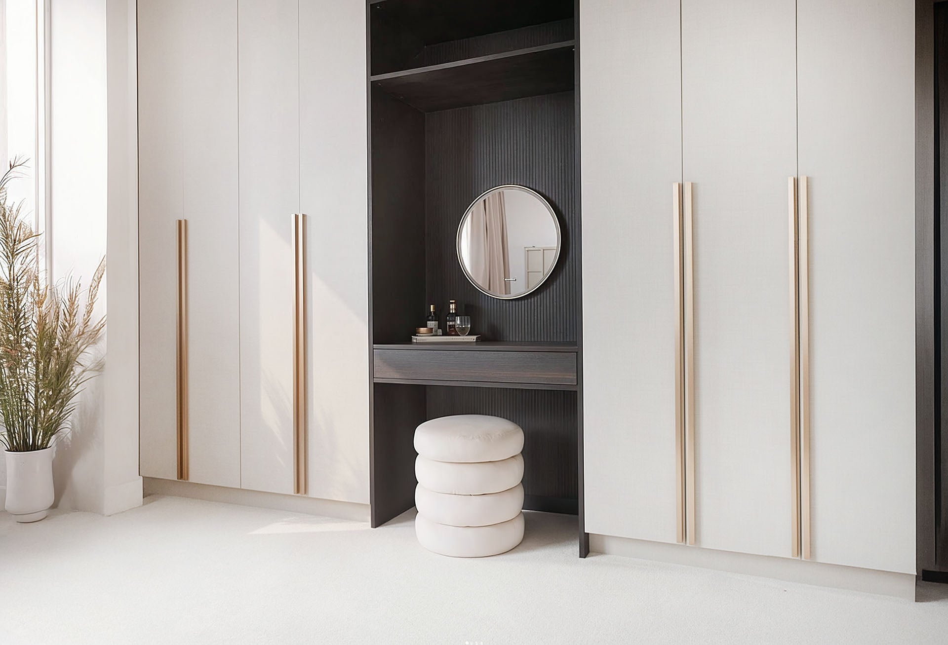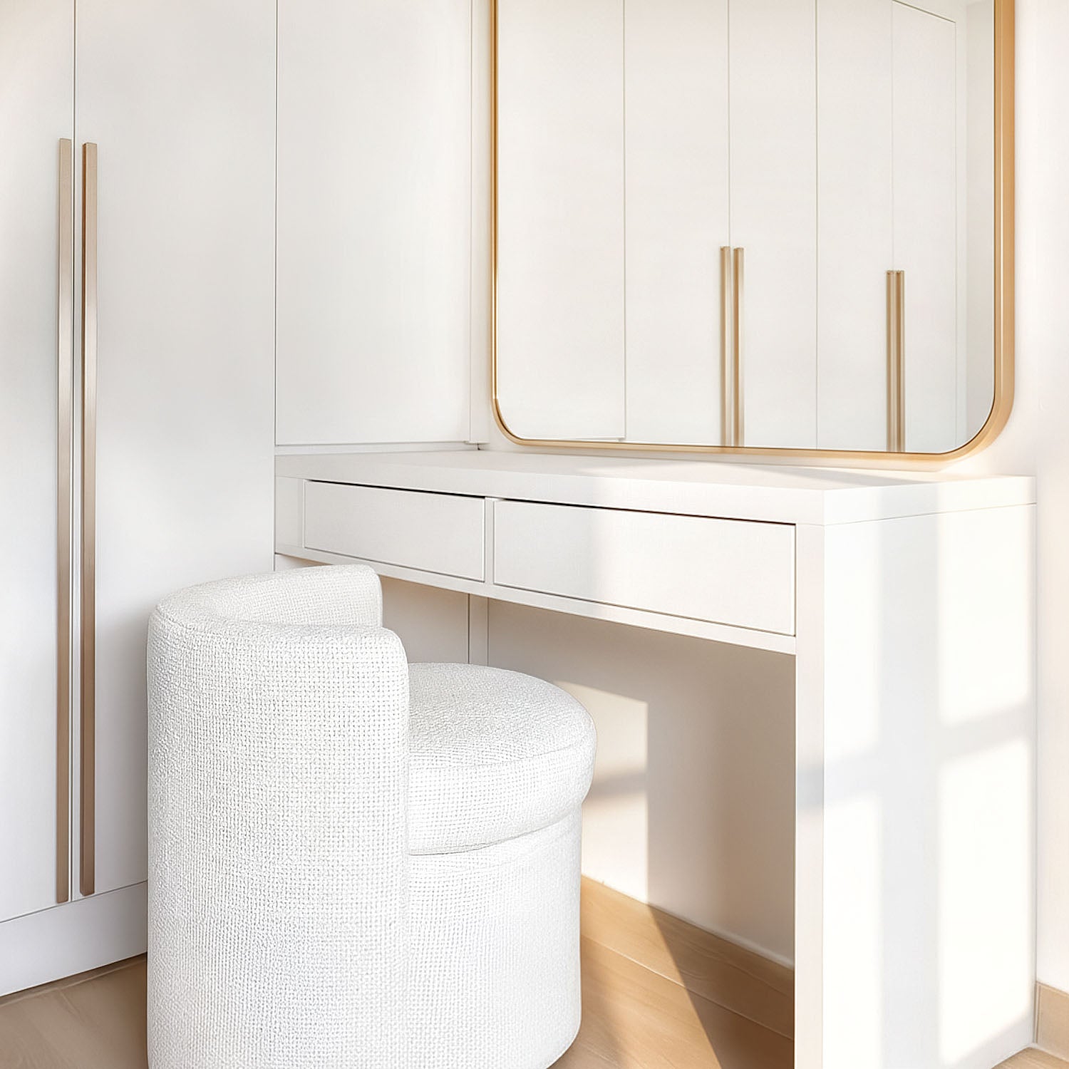 Een kast met bureau op maat geeft jou de ideale combinatie van functionaliteit en design. Je krijgt niet alleen een comfortabele werkplek, maar ook slimme opbergmogelijkheden die zorgen voor rust en overzicht. En wil je liever een stijlvolle make-up tafel met geïntegreerde opbergruimte? Ook dat maken we mogelijk. Met verborgen lades en verlichting ontstaat een plek waar je elke dag plezier van hebt.