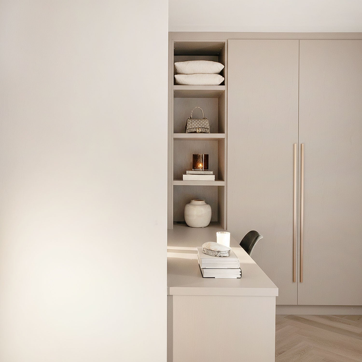 Een kast met geïntegreerd bureau, make-up tafel of hobbyhoek vraagt om maatwerk dat écht klopt. Wij zorgen voor de perfecte balans tussen functionaliteit, design en comfort.