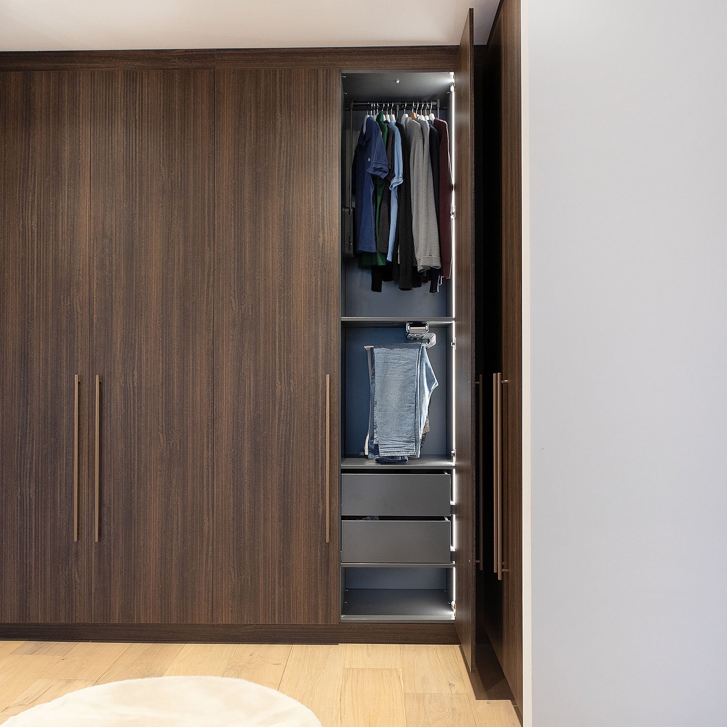 Creëer moeiteloos je droom inloopkast, precies zoals jij het wilt. Deel je hangkleding, schoenen en accessoires in, en kies je favoriete kleuren voor zowel de kast als de laden.