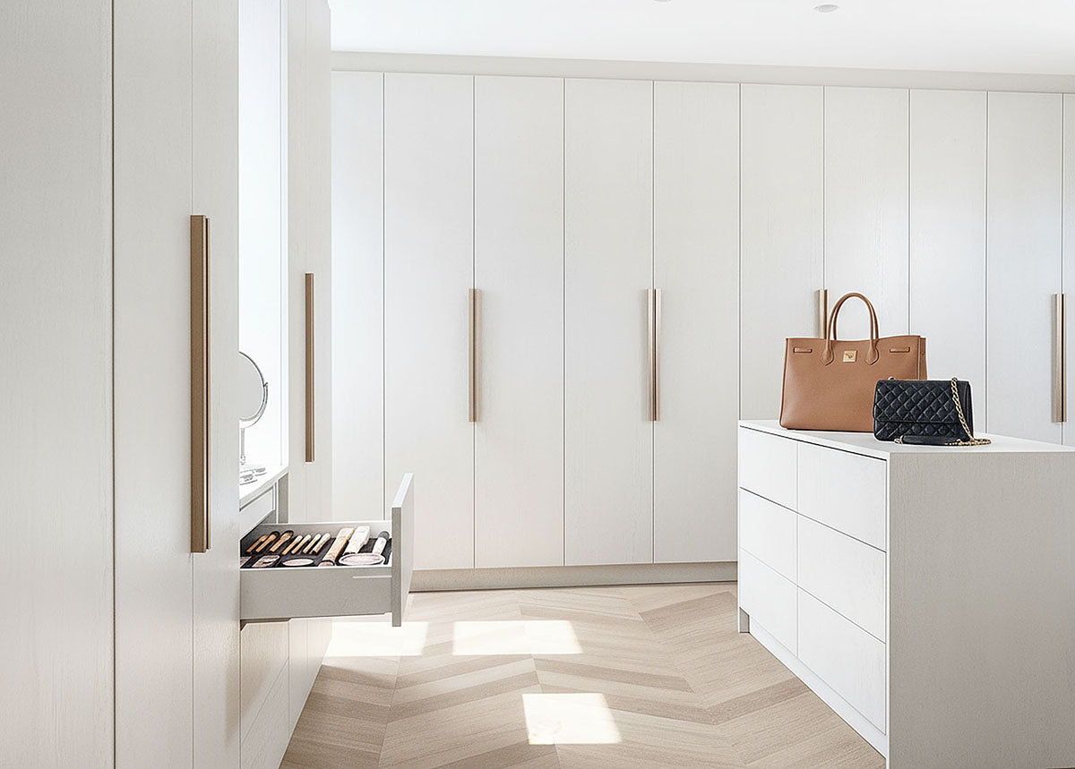 Met de ruime keuze aan kleuren, van zachte effen tinten tot rijke houtstructuren, en verschillende handgrepen, stel je een inloopkast samen die perfect bij jouw stijl en interieur past.